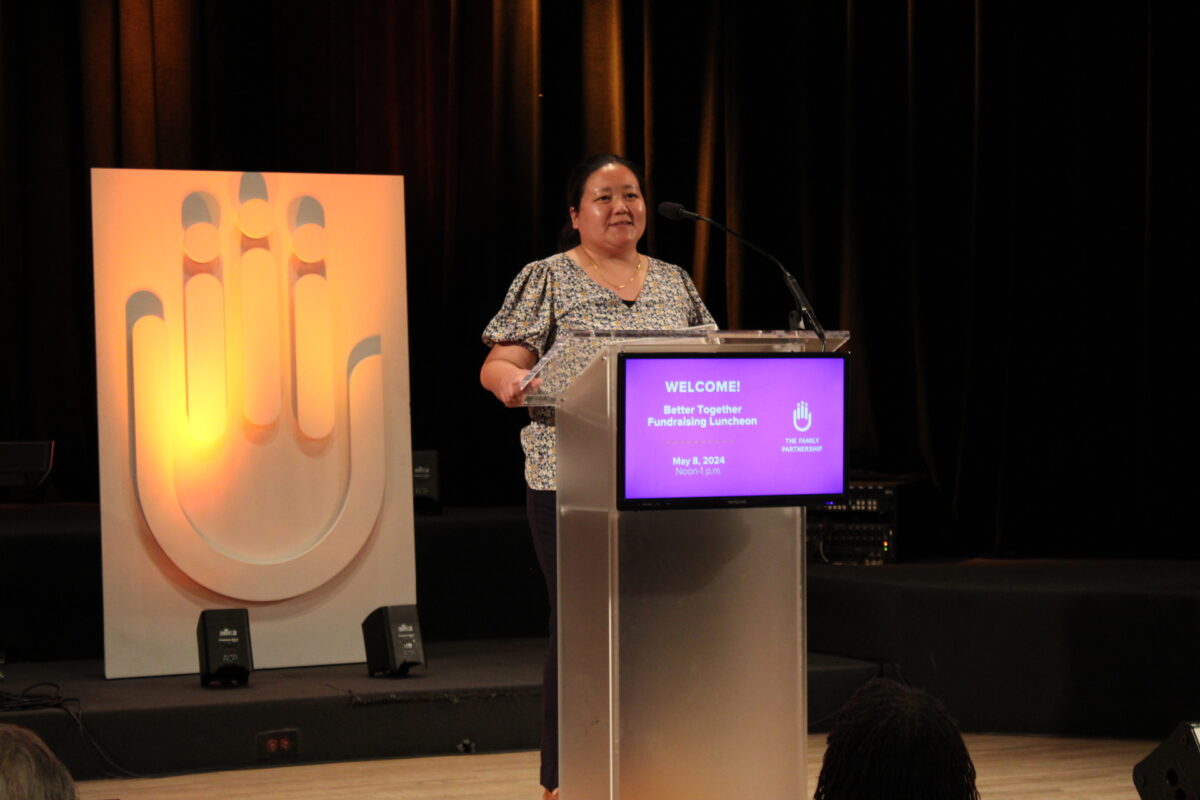 On May 8, The Family Partnership welcomed guests, staff, and volunteers to our 2024 Better Together fundraising luncheon. Dianne Haulcy, President and CEO, spoke to the healing power of relationships in The Family Partnership’s work. The event also featured inspiring stories from Ms. Linda Wilson, foster mother, and Ae Vang, outpatient therapist, who have partnered together in support of children’s healing.
